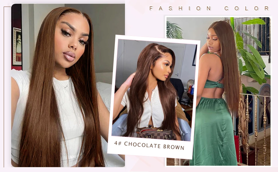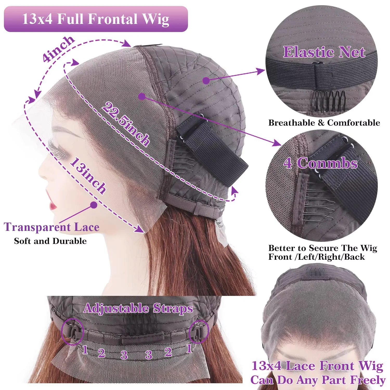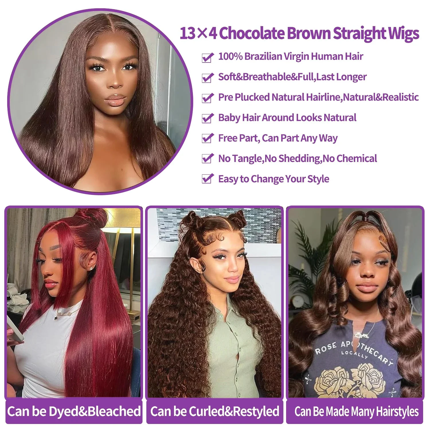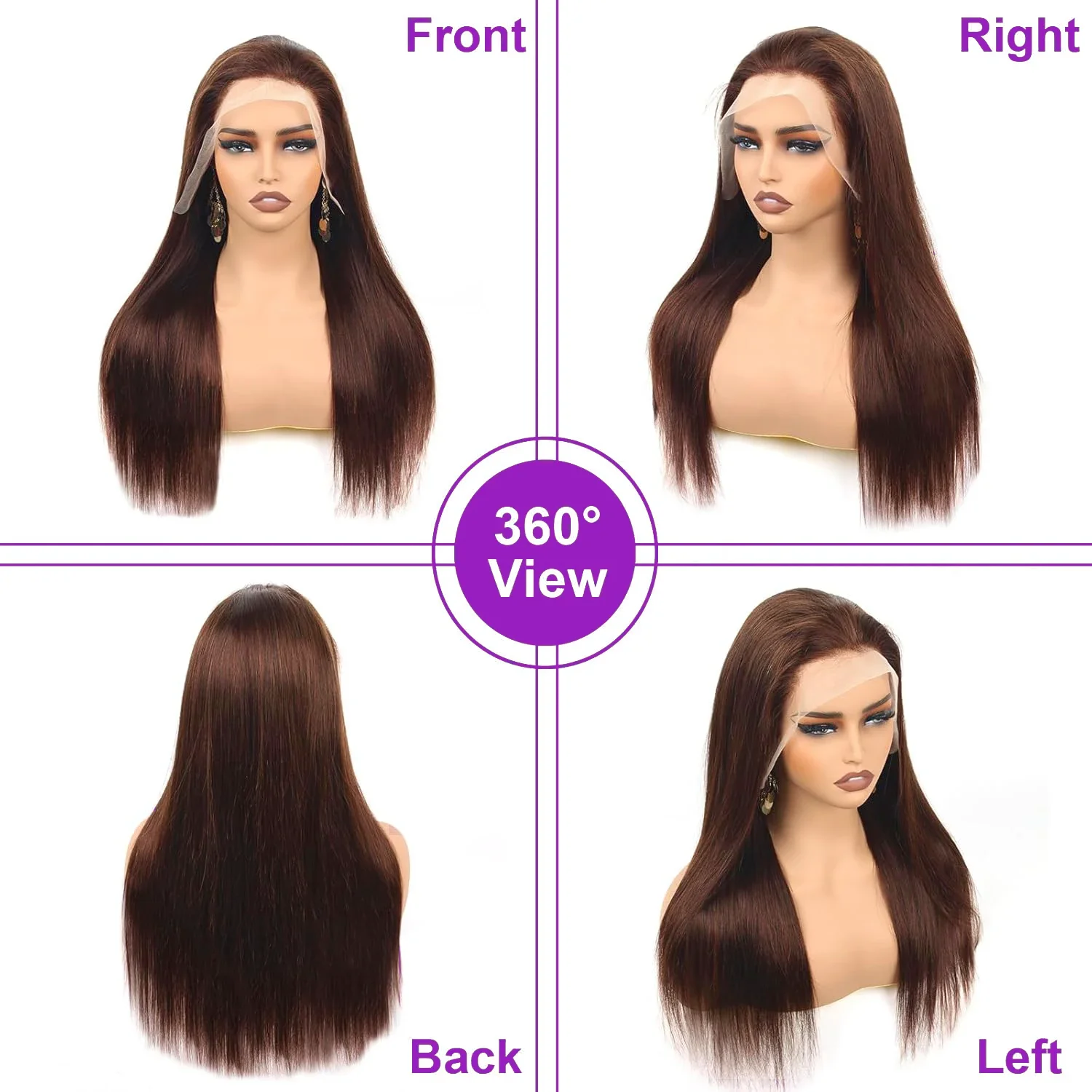 13X6 Chocolate Brown Lace Front Wigs 13X4 Bone Straight Human Hair 30 32 Inch Lace Frontal Colored Wig 100% Brazilian For Women