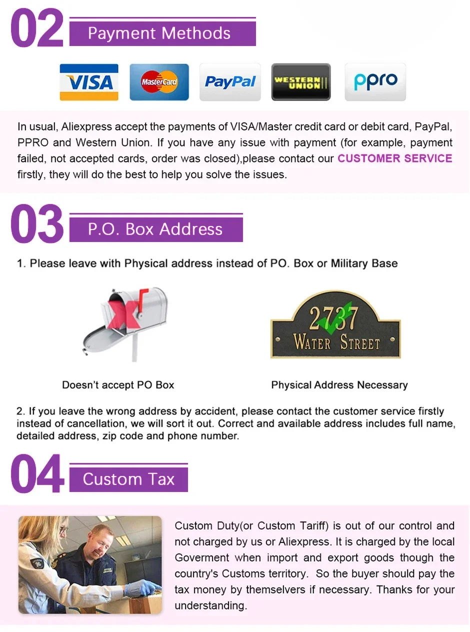 A: AliExpress accept Credit Card, Bank Transfer (TT), Western Union, Money Bookers for payment detail. If payment failed, please contact us, we’ll guide you how to pay.