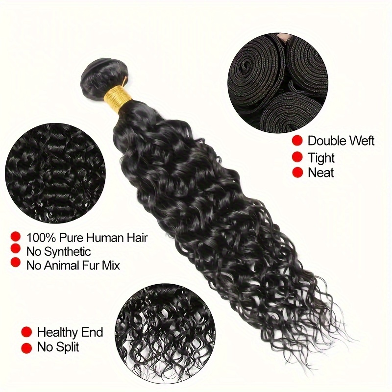 2 Bundles Peruvian Water Wave Hair Virgin Human Hair 100% Human Hair Bundles Natural Black Color Can Be Dyed No Shedding Peruvian Curly Hair For Women 200g