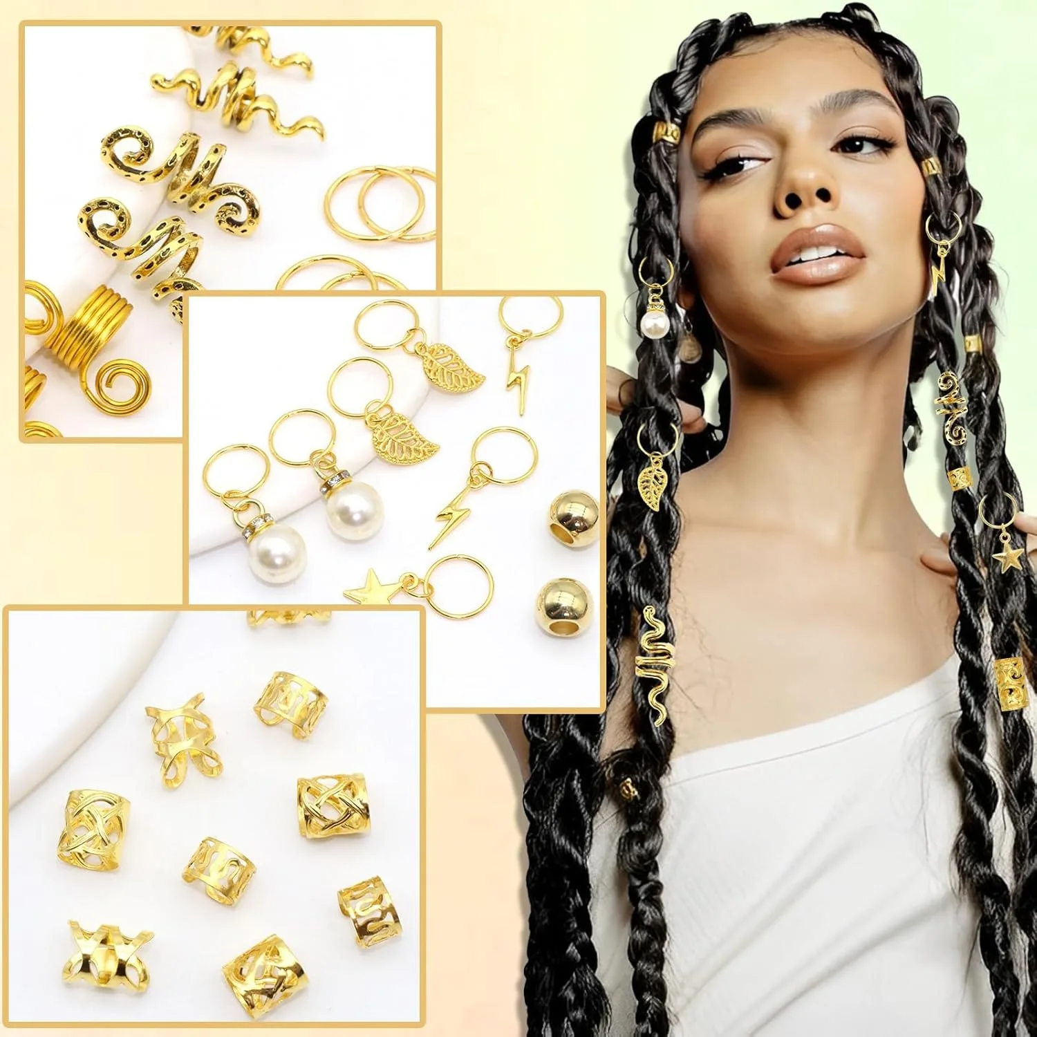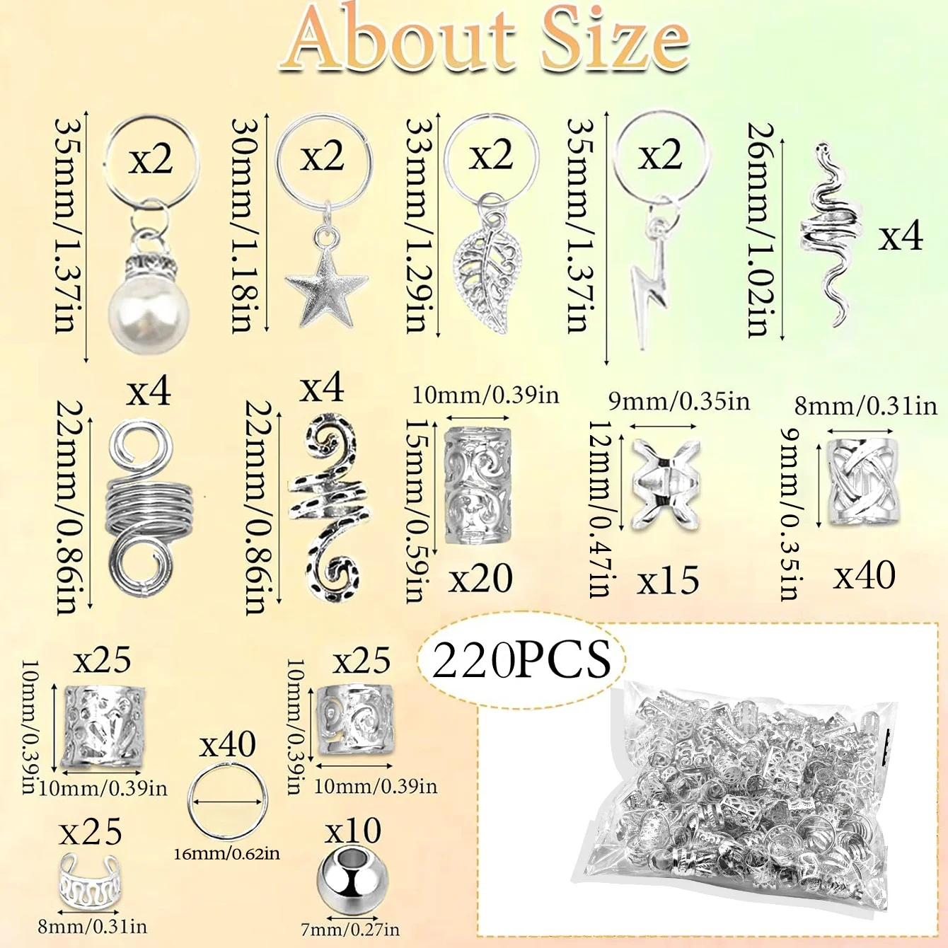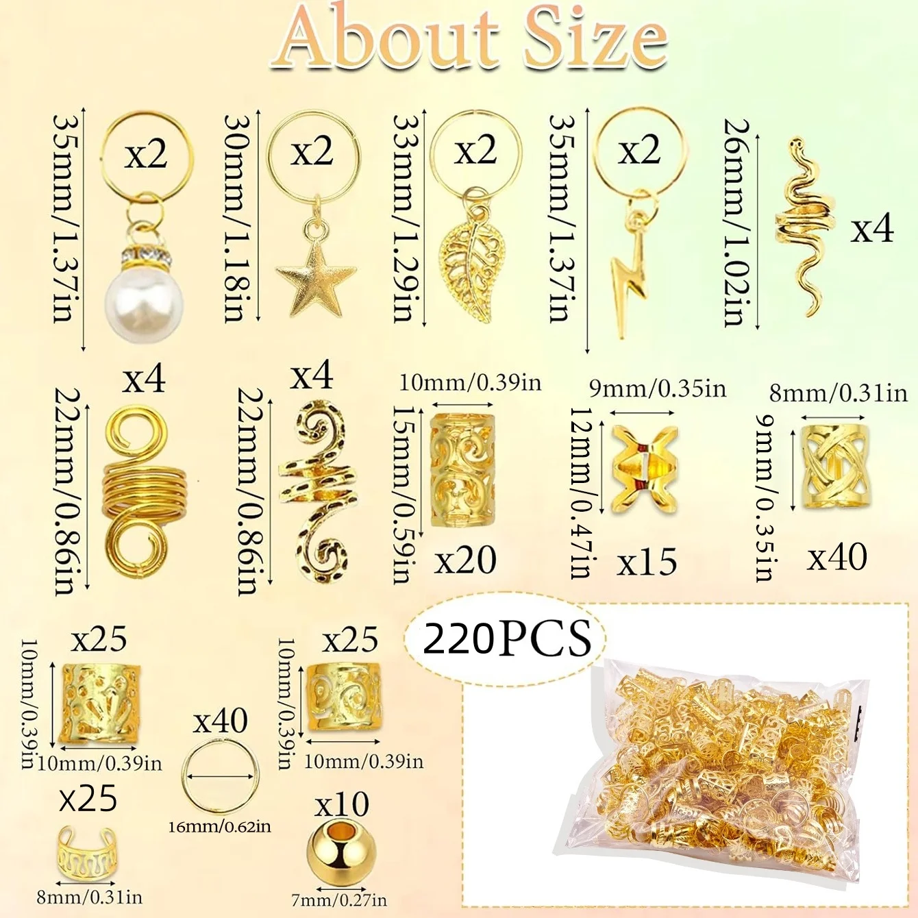 220pcs Hair Accessories,Loc Jewelry For Braids,Metal Hair Ring Cuff For Dreadlocks Accessories, Hair Braid Beads Decoration Boho