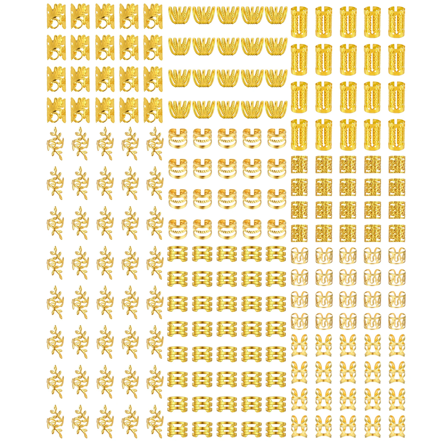 220Pcs Hair Beads Hair Cuffs Braiding Hair Rings Alloy Hair Charms For Loc Braids Hair Adjustable Metal Braid Hair Accessories