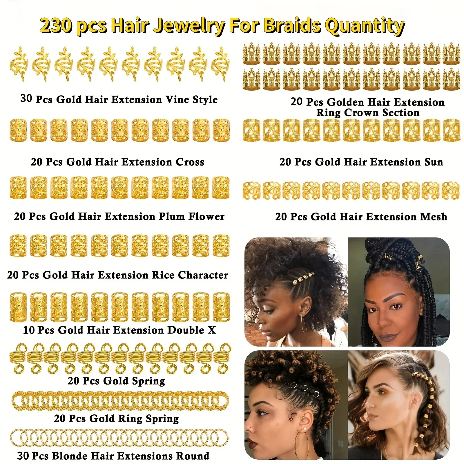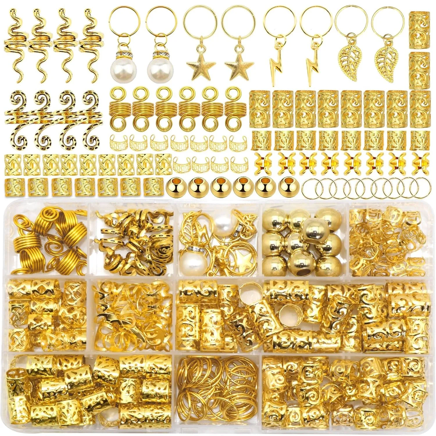 230pcs Hair Accessories DIY Copper Iron Dreads Decorations Metal Hairpins for Hair Styling Handmade Jewelry Making