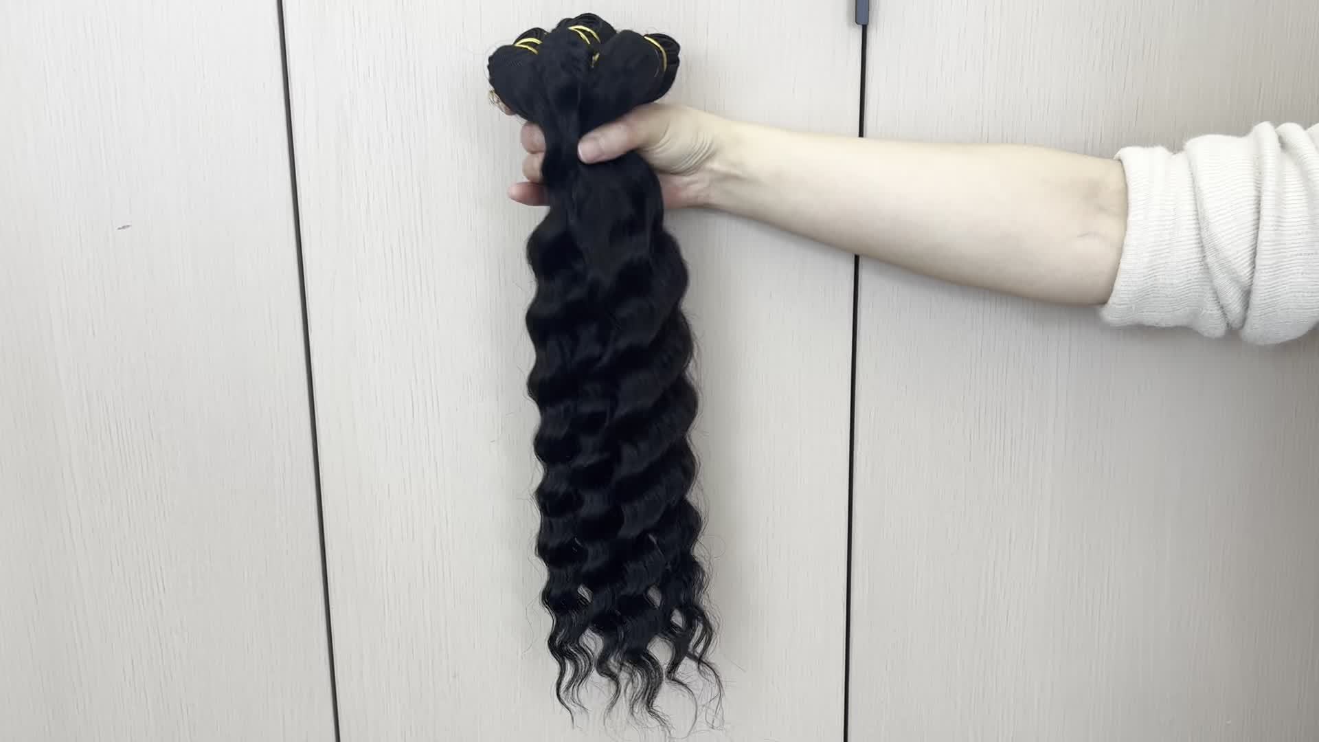 4Pcs Human Hair Deep Wave Bundles 100% Unprocessed Brazilian Virgin Hair Extensions For Women Natural Black 12A Deep Wave Human Hair Bundles