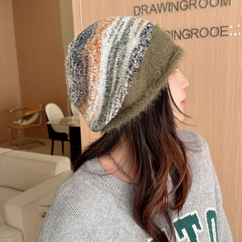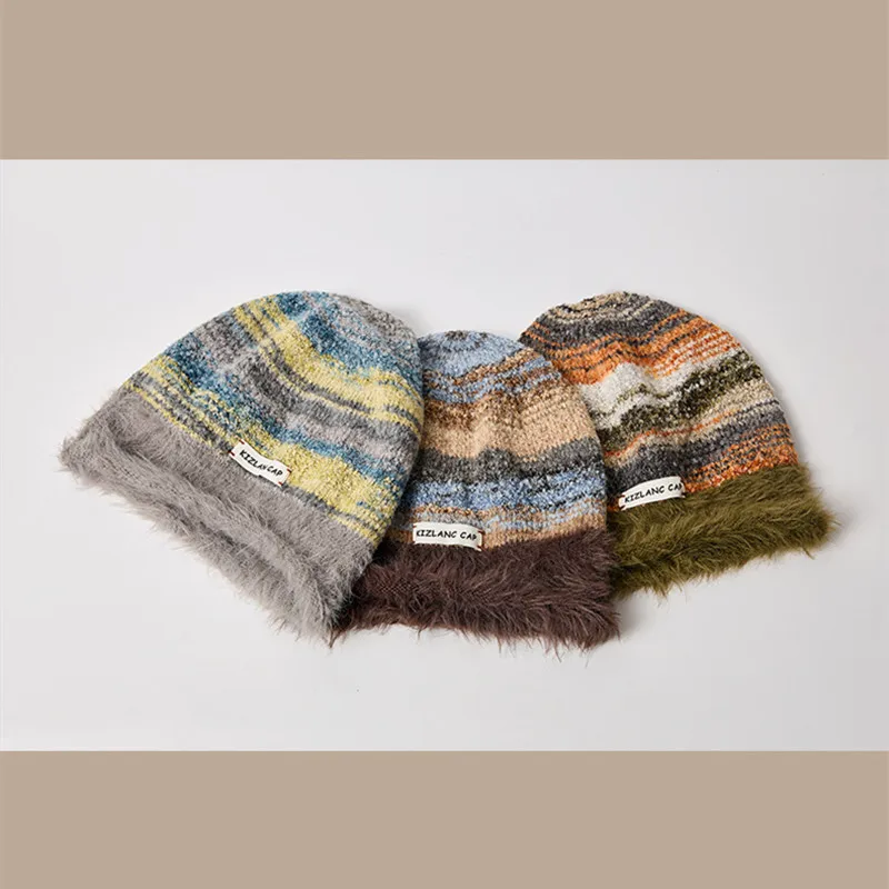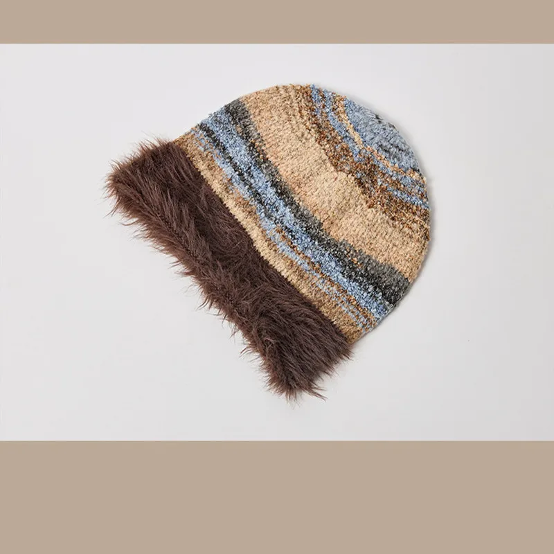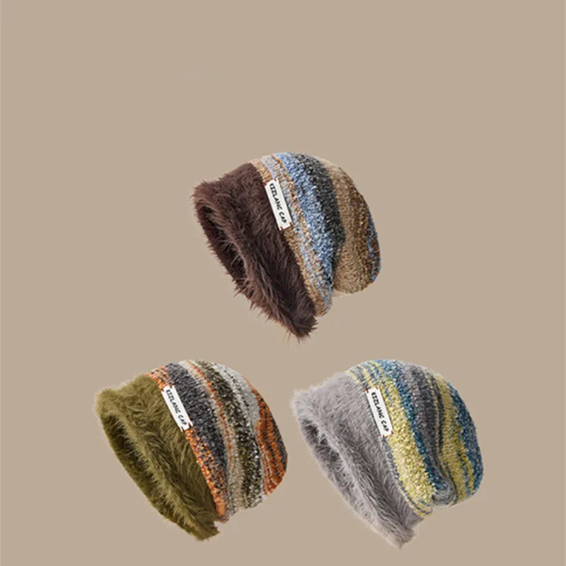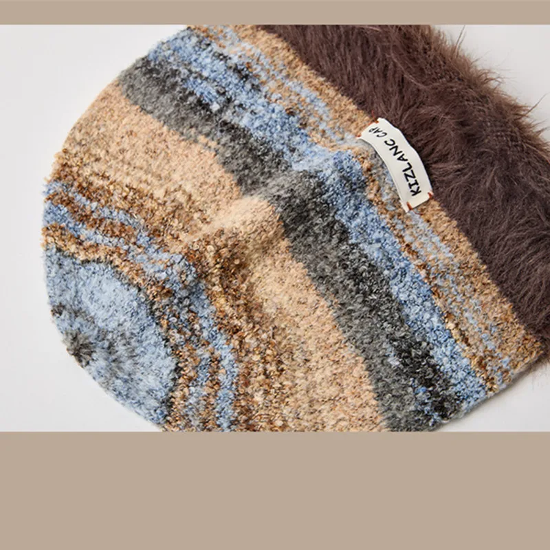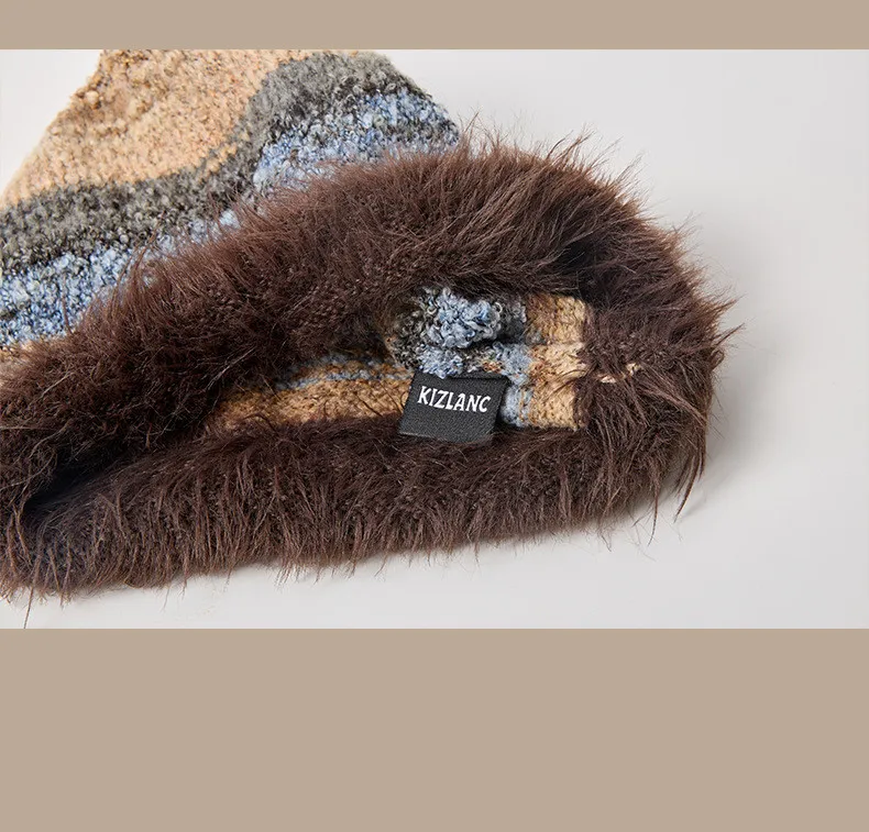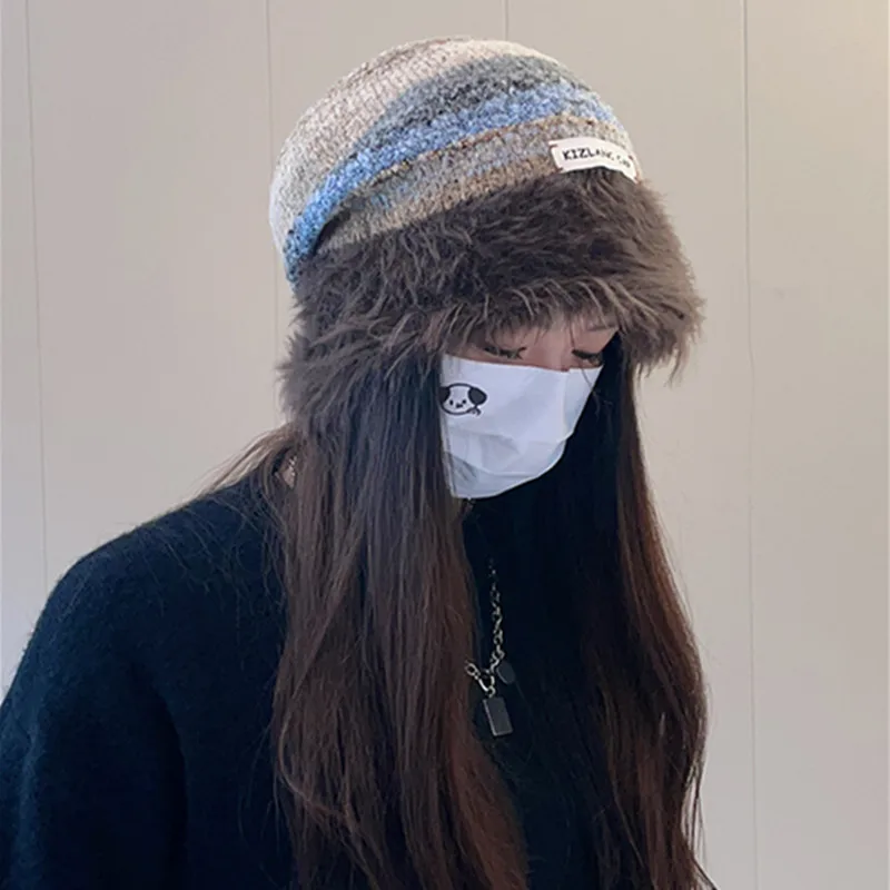 Bonnet en fourrure avec étoile bloquant les documents rayés pour femme, bonnets chics, chapeau en peluche épais, chaud, mode fil