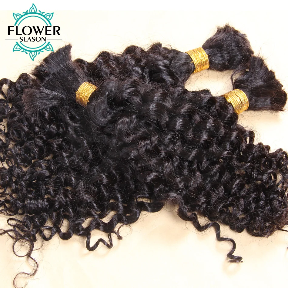 Bulk Human Hair For Braiding Wholesale Burmese Boho Braids Human Hair Extensions No Weft Double Drawn Curly Hair Bulk 3Bundles