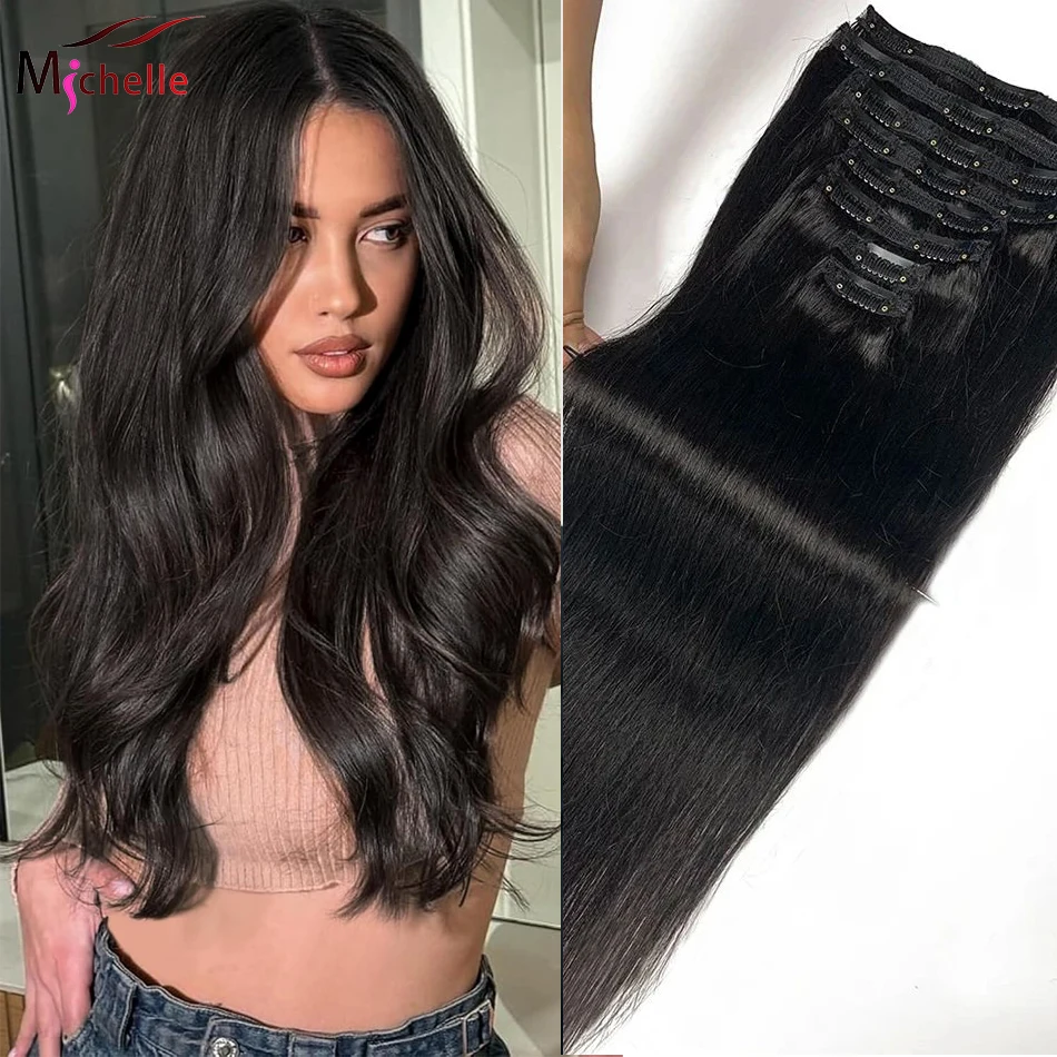 Clip ins Hair Extensions Straight Human Hair 100% Unprocessed Full Head Brazilian Virgin Human Hair Natural Color Clip ins Hair