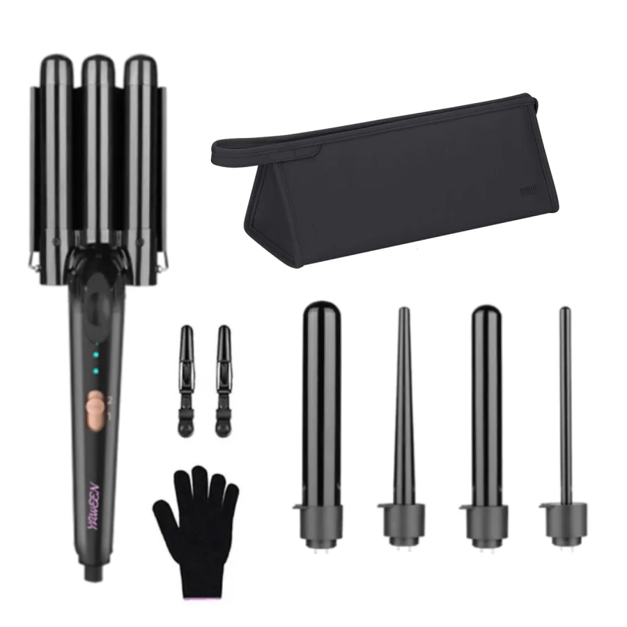 If you’re not sure whether you want tightly wrapped curls, flowing locks, bouncy soft waves, or classic beach waves, this 5-in-1 wand curling iron set is for you. With this 3 barrel crimper hair iron, you can create stunning beach waves that will last all day, no matter your hair type or length.