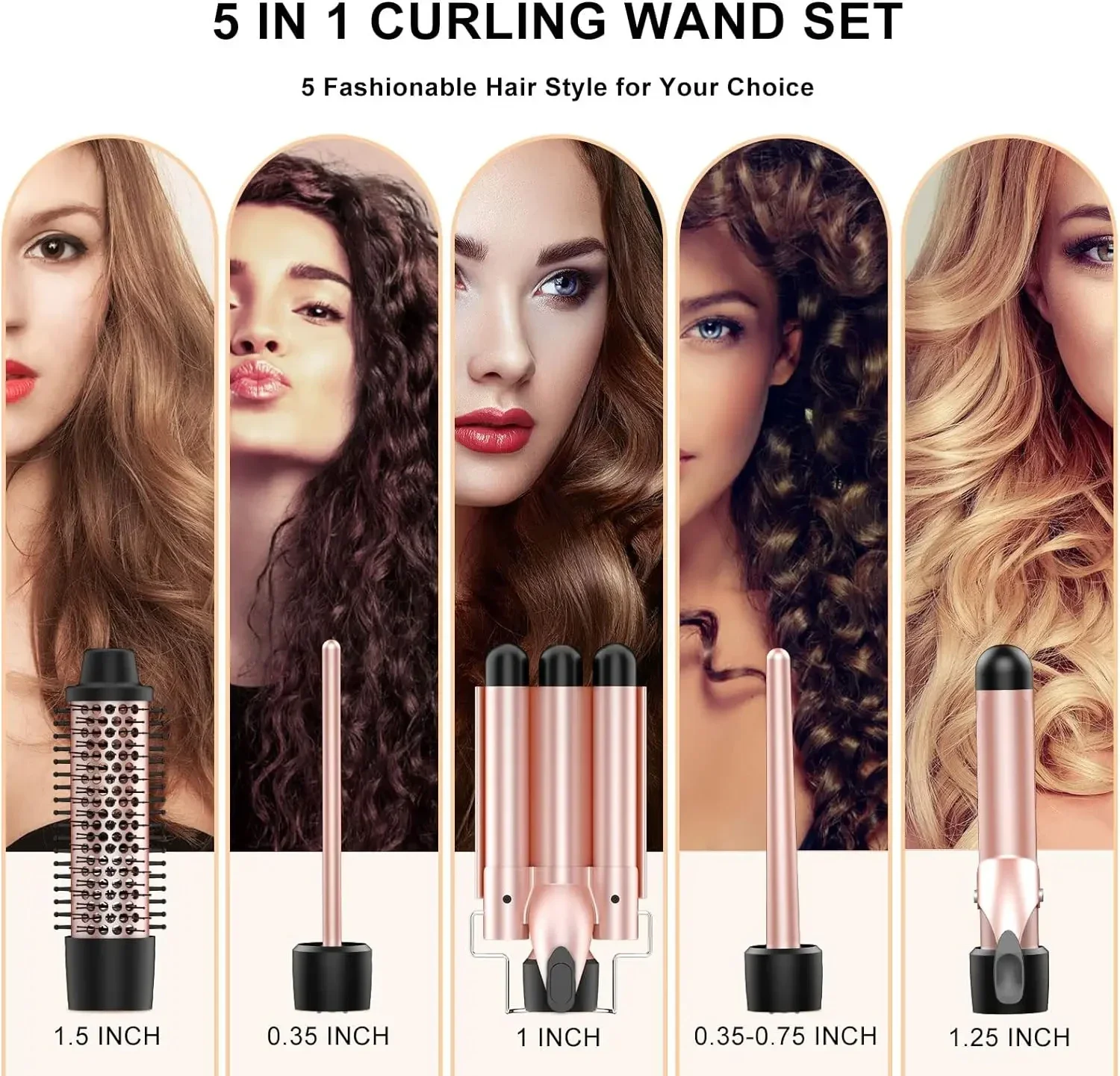 Curling Iron 5-in-1 Hair Curler Professional Curling Wand Beach Waves Hair Tools Appliances Suitable For All Hair Types