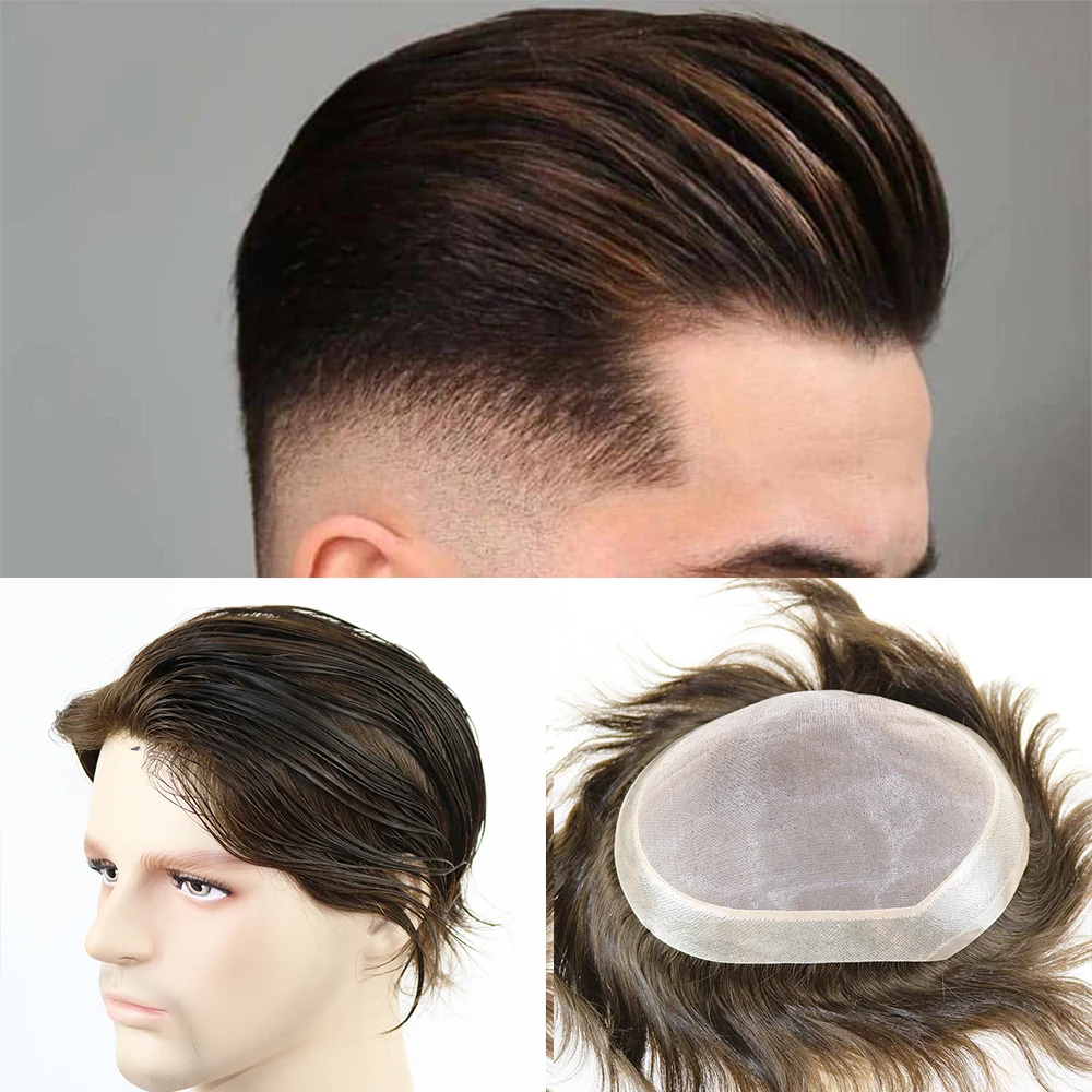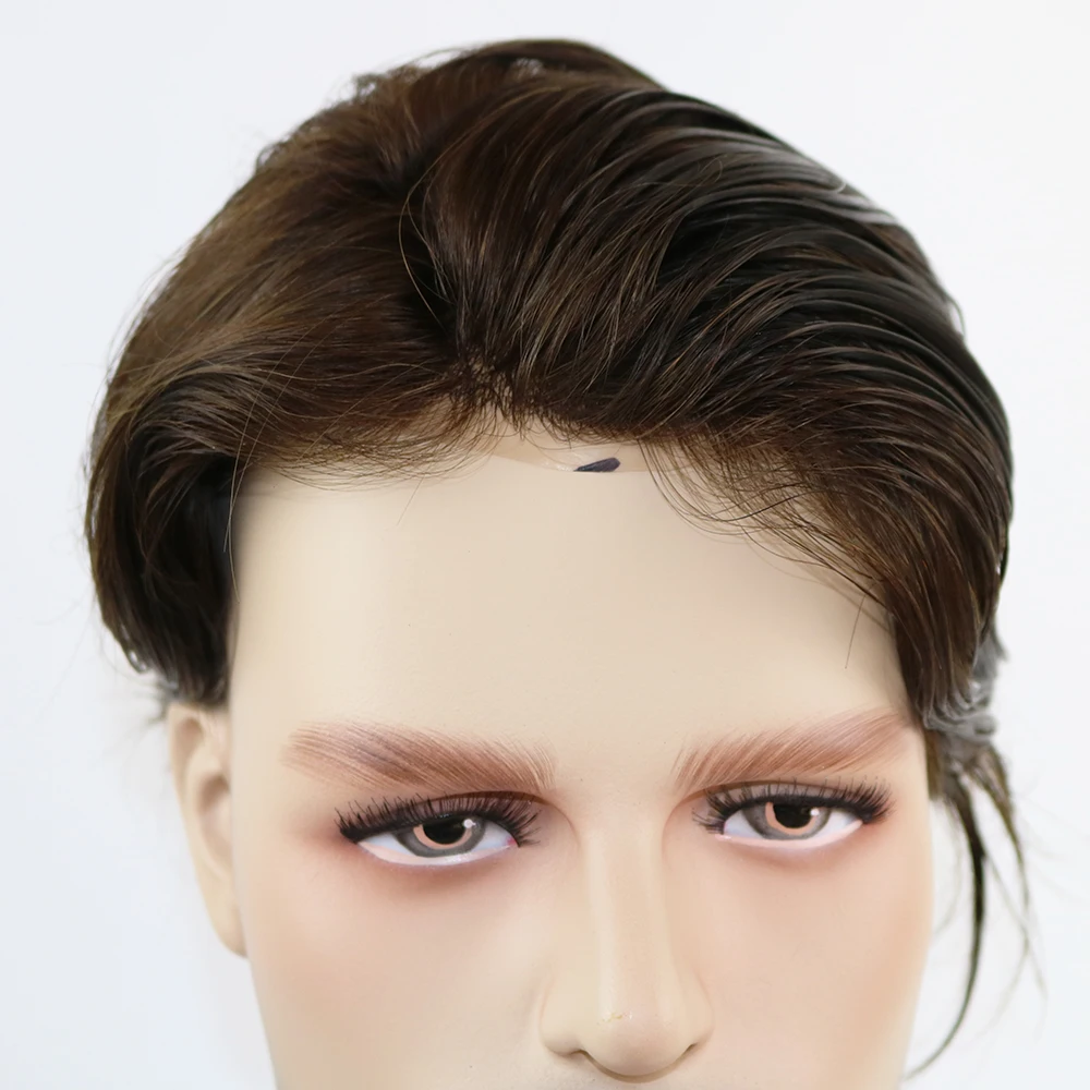 European Blonde Brown Black #4 Human Toupee 100% Human Hair Man Bald Wigs Undetectable Capillary Prosthesis Durable Fine Mono