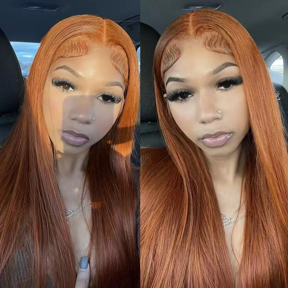 Ginger Orange Synthetic Lace Front Wig Middle Part Silk Straight Ginger Hair Lace Wig for Women Daily Makeup Use Heat Fiber Hair