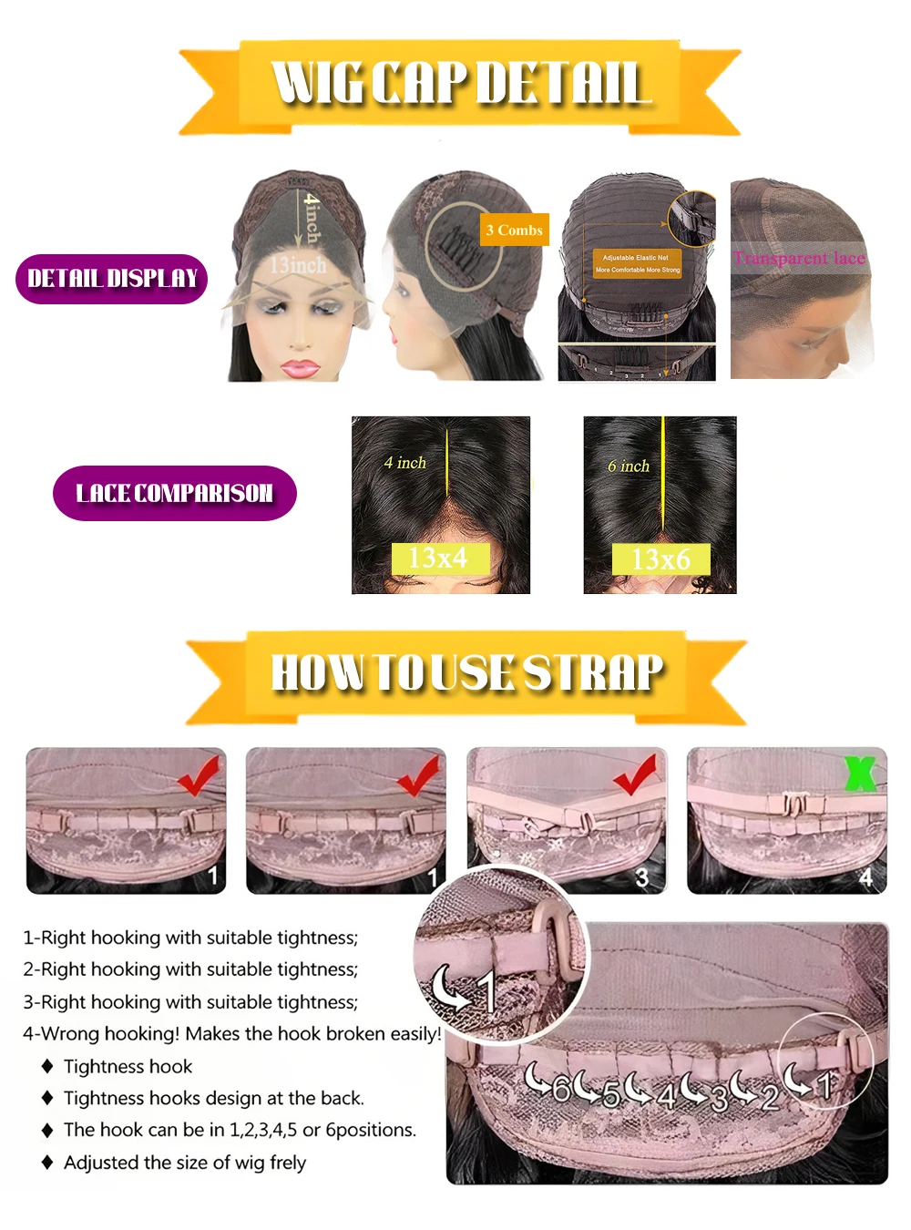 ❀ Size of Lace: 13×4 Lace Frontal Wig, High Quality Swiss Lace