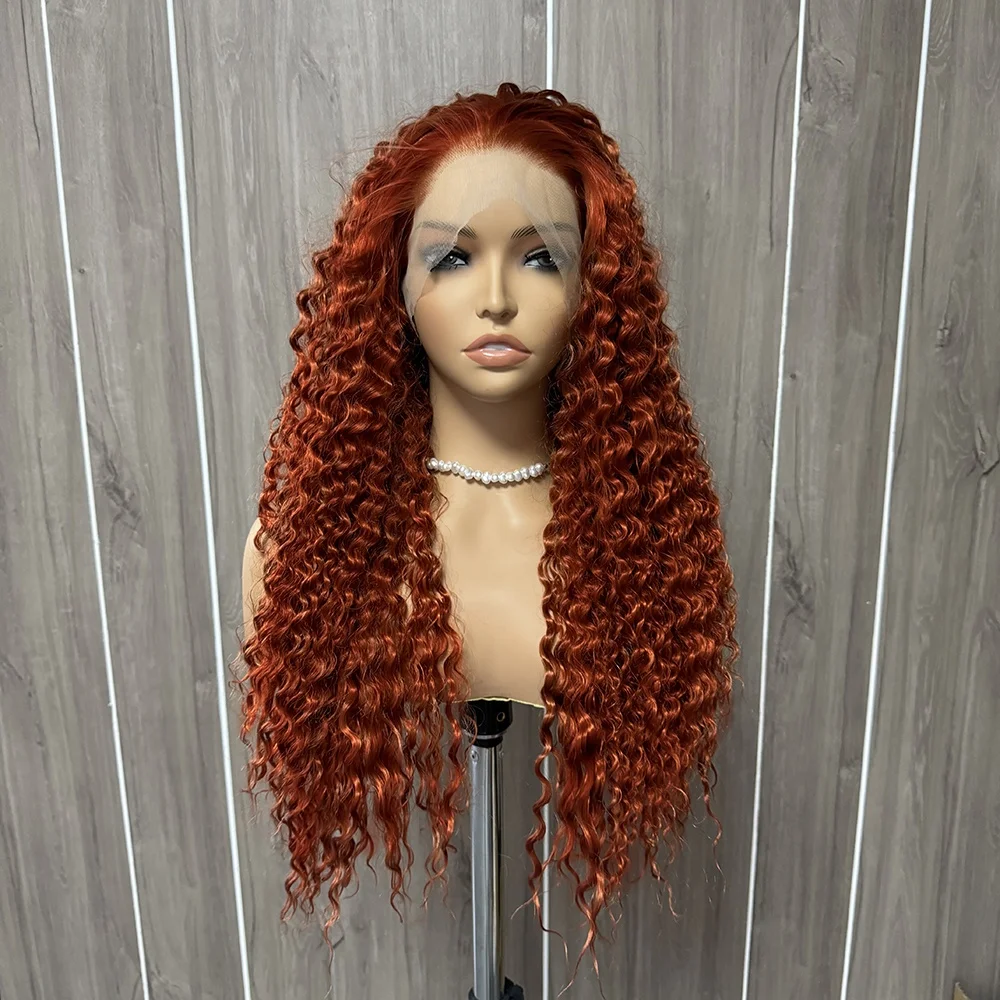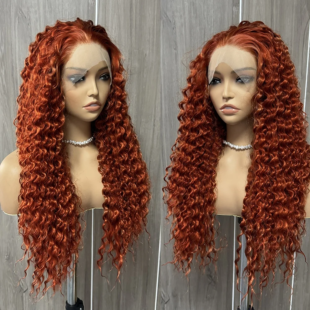 Ginger Wig Synthetic Lace Front Wigs For Women Long Deep Curly Synthetic Hair Reddish Brown Wig Curly Frontal Wigs Cosplay Party