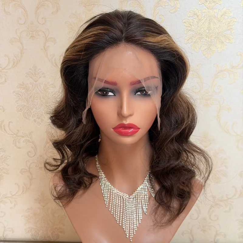 Glueless Wig Human Hair Blonde Highlights Brown Colored Human Hair Wig 13×4 Pre Bleached Knots Stock Loose Deep Cheap Price