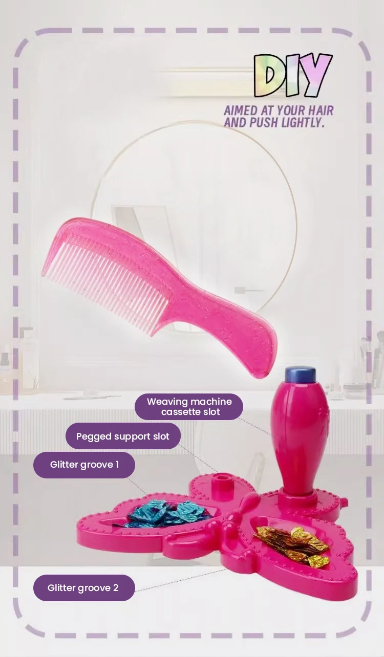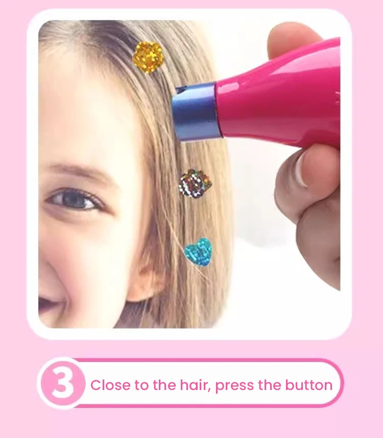 1. Multi-functional sequin tray: Take out the sequins and place them in the grooves. Create your own unique look with the colorful sequins2. Bring the knitting opening close to your hair and press the button to weave sequins. The operation is simple