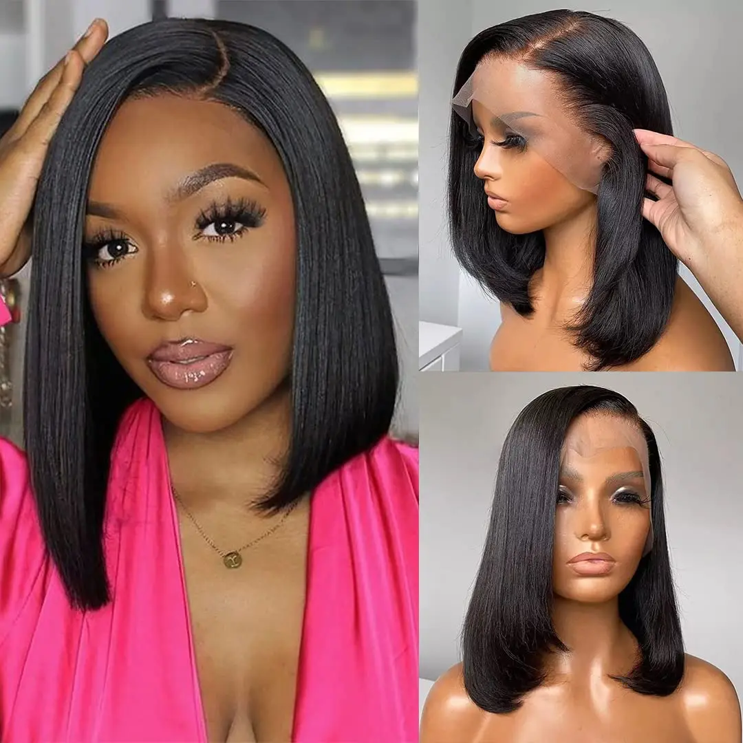 Lace Front Short Bob Wig Straight Bob Wig 13X4 Lace Front Human Hair Wigs For Black Women 180% Brazilian Human Hair Wig Sale