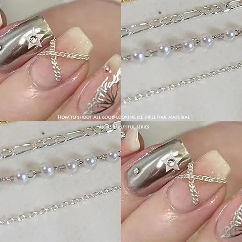 Nail Chains Gold Silver Nail Stone Beads 60cm Decor 3D Alloy Punk Style Nail Decoration Nail Jewelry Nail Charm Accessories