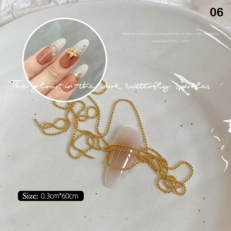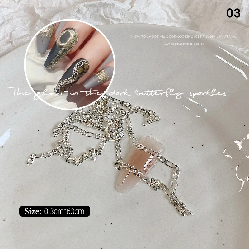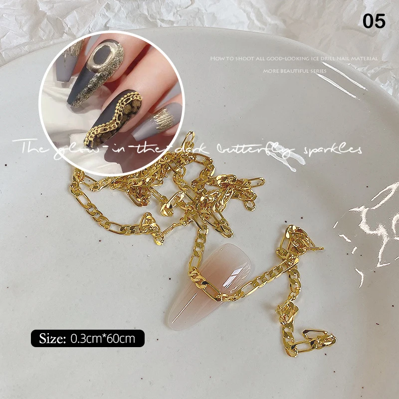 Nail Chains Gold Silver Nail Stone Beads 60cm Decor 3D Alloy Punk Style Nail Decoration Nail Jewelry Nail Charm Accessories