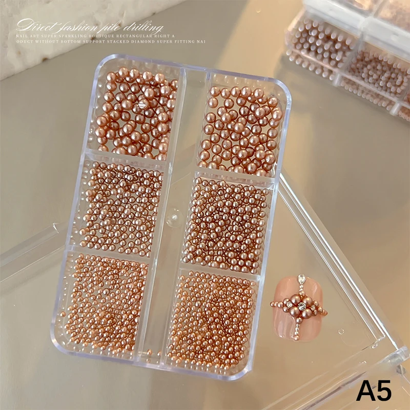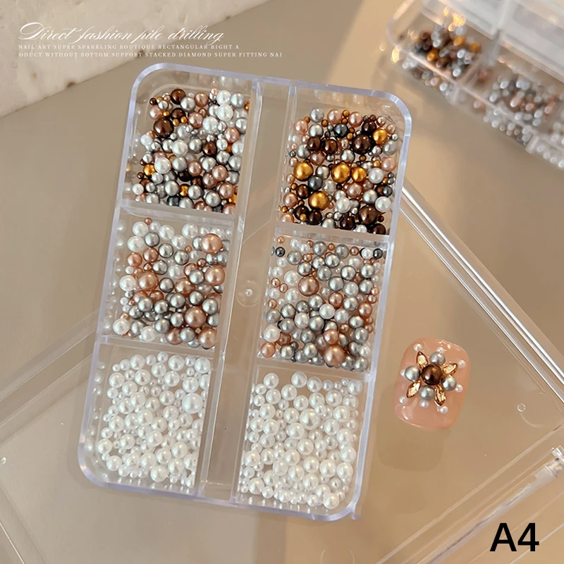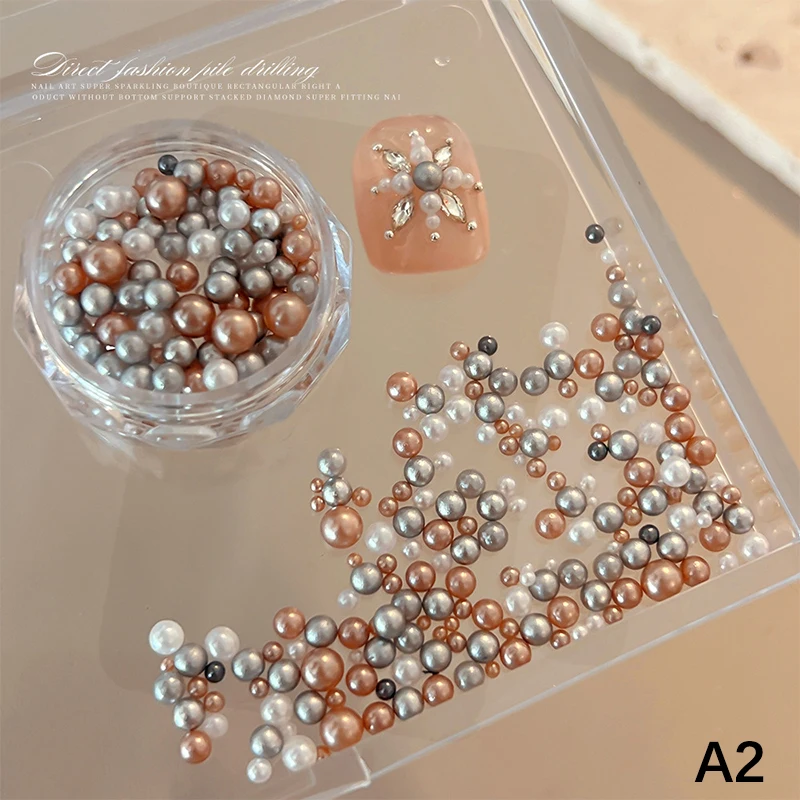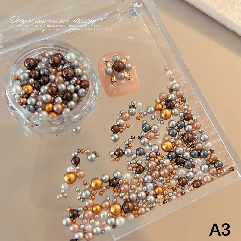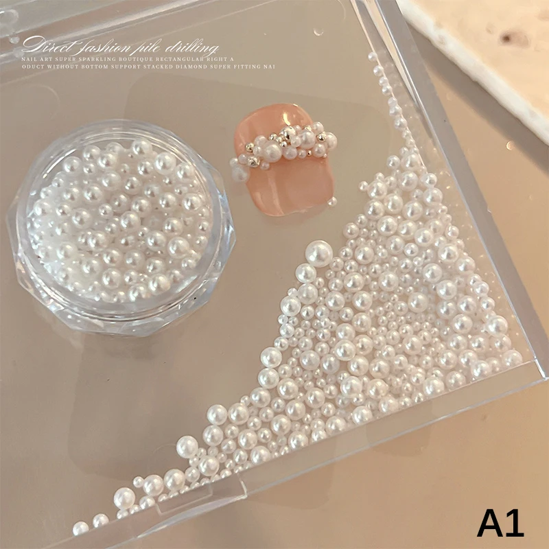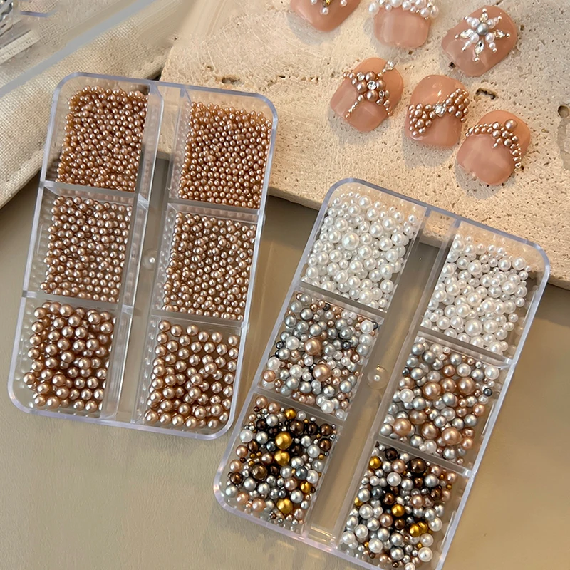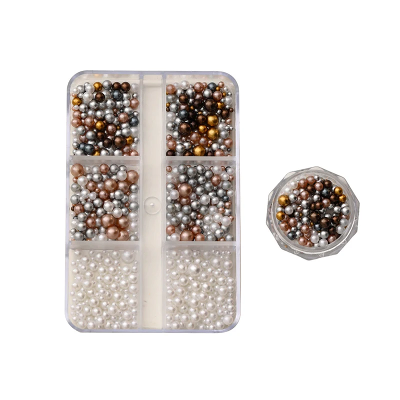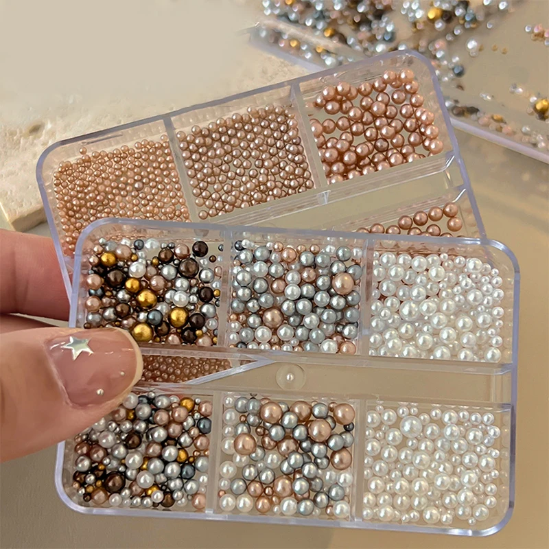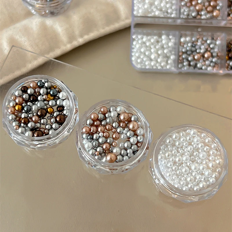 Nail Charms Pearl Decorations Mixed Sizes Colorful Bag DIY Wearable Nails Round Pearls Nail Gems Crafting