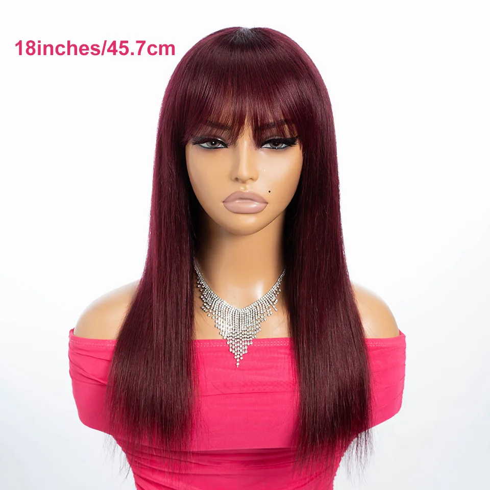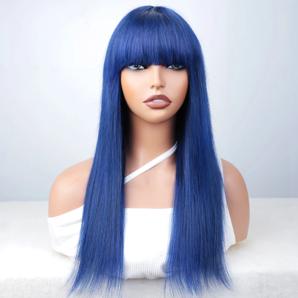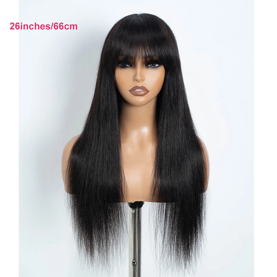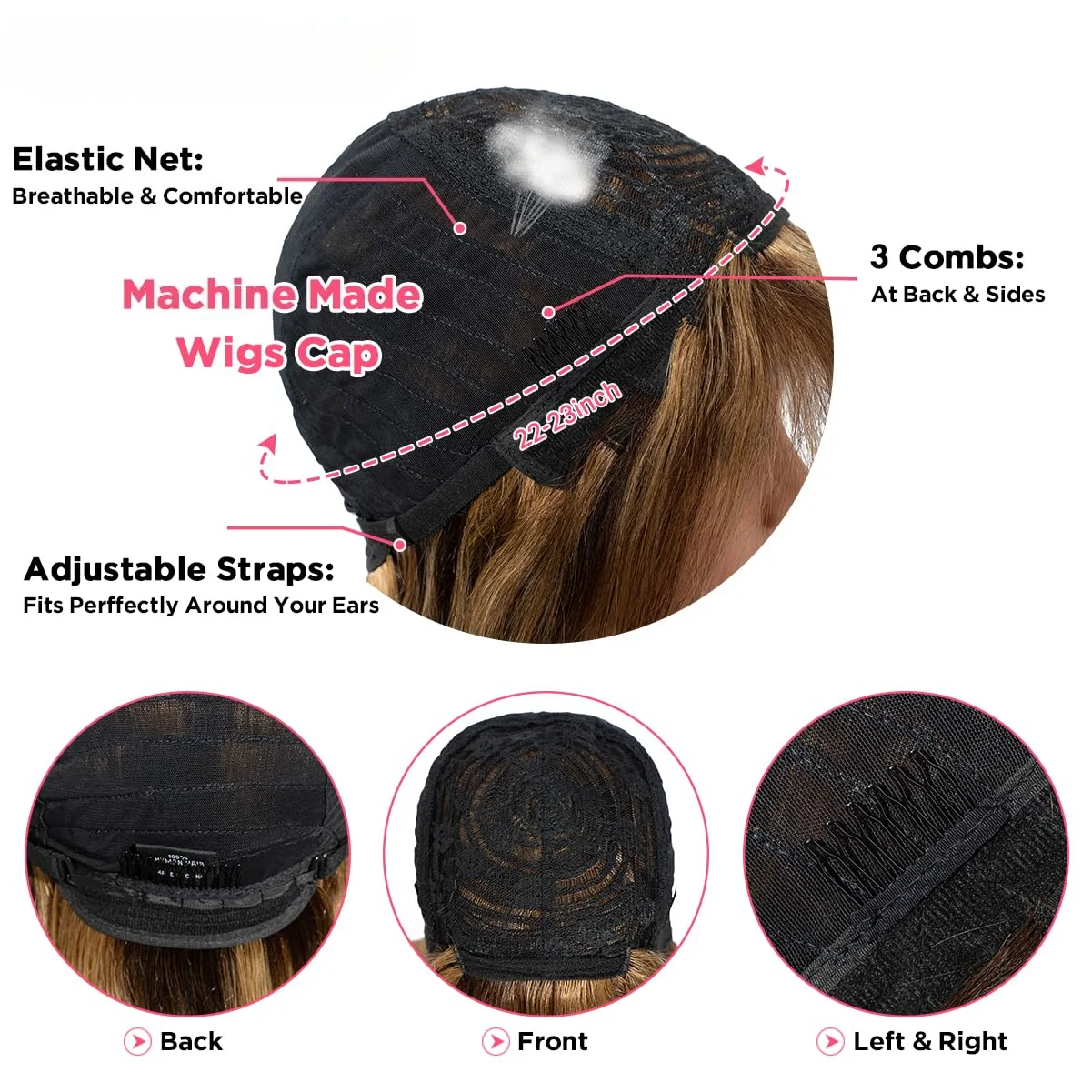 Ombre Brown Highlight Straight Human Hair Wigs With Bangs Wear And Go Glueless Colored Human Hair Wigs 16-28inches Straight Wigs