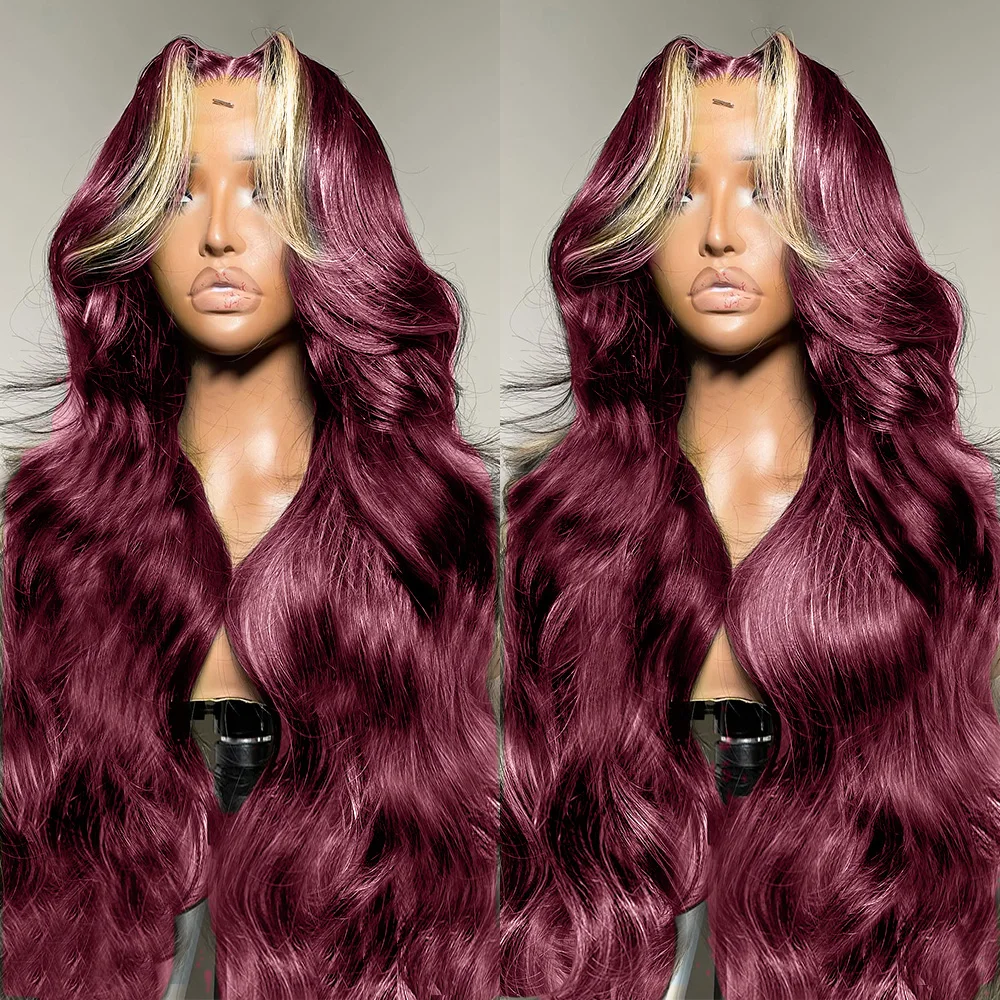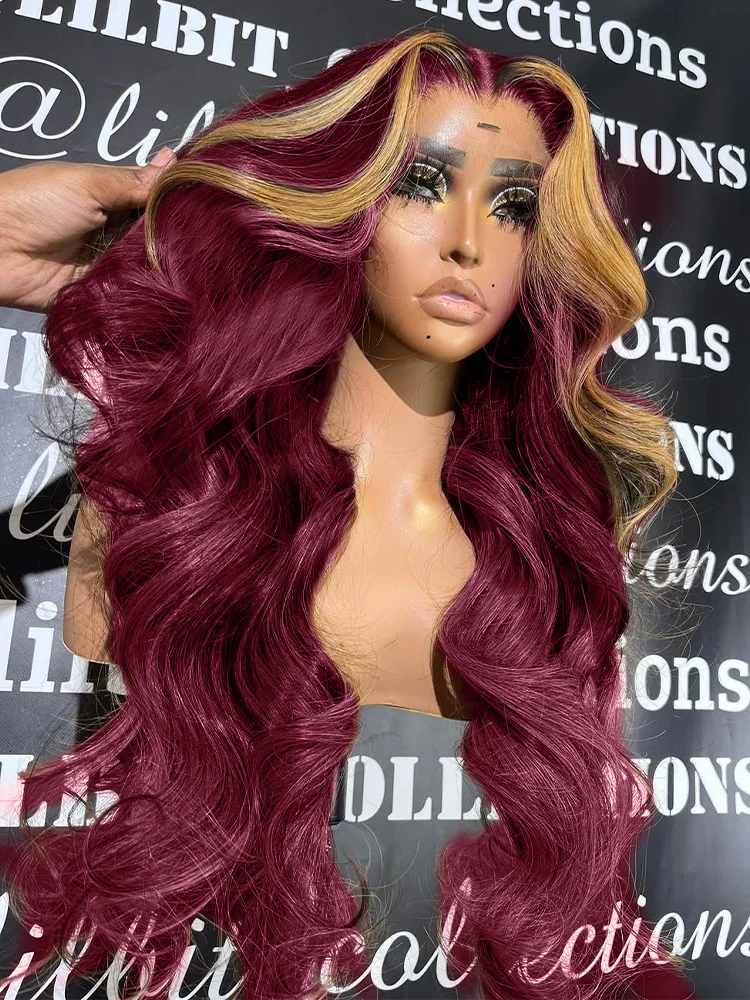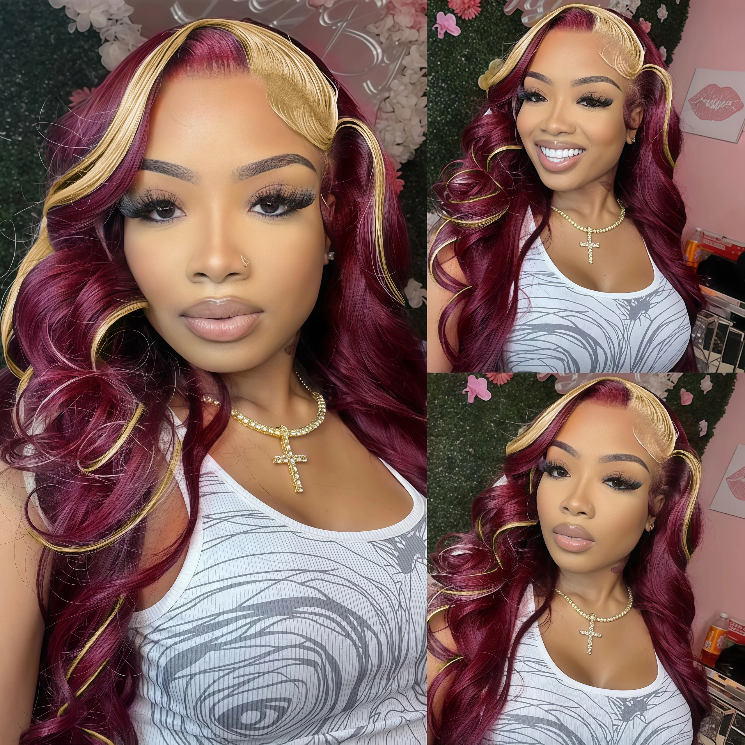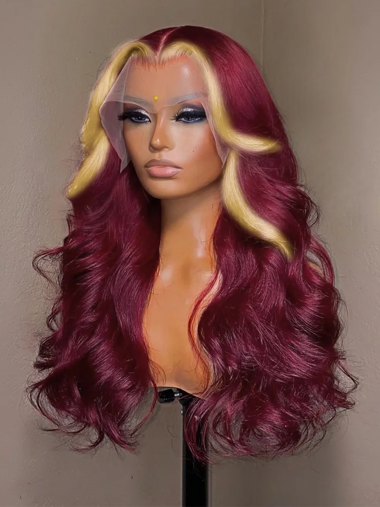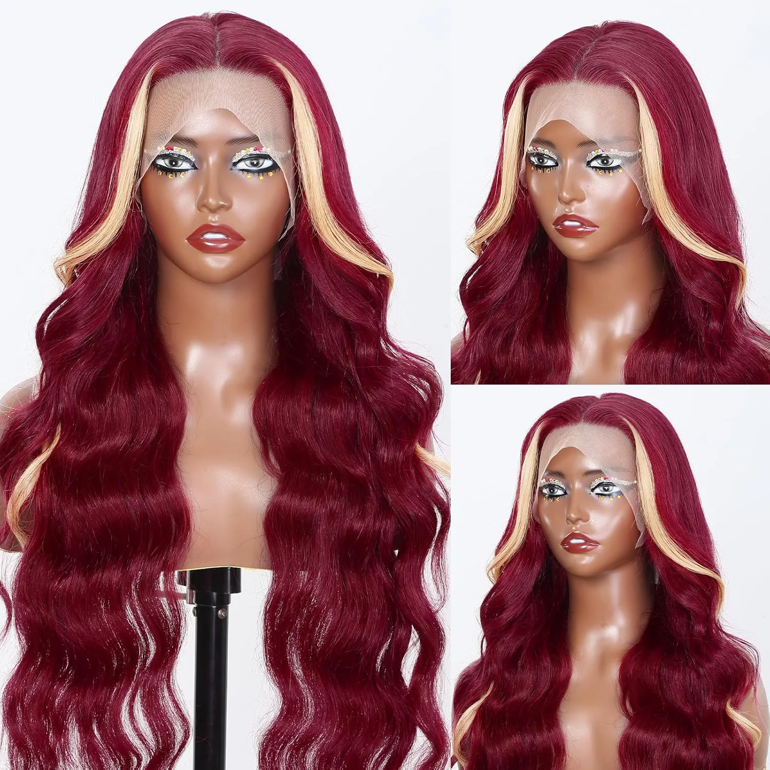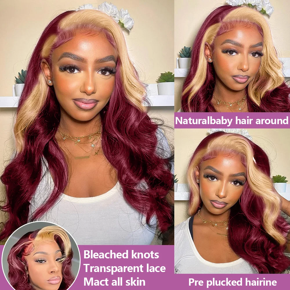 Ombre Highlight Blonde With Red Colored 13×4 Lace Front Wigs Human Hair Brazilian 30 Inch Body Wave Human Hair Wigs For Women
