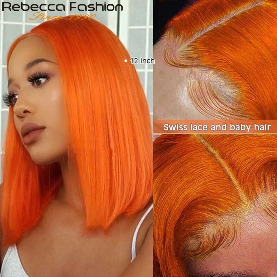 Ombre Orange Blonde Short Bob Lace Front Wigs 100% Human Hair Wigs Bob Lace Wigs For Women Blonde Orange Straight Brazilian Hair