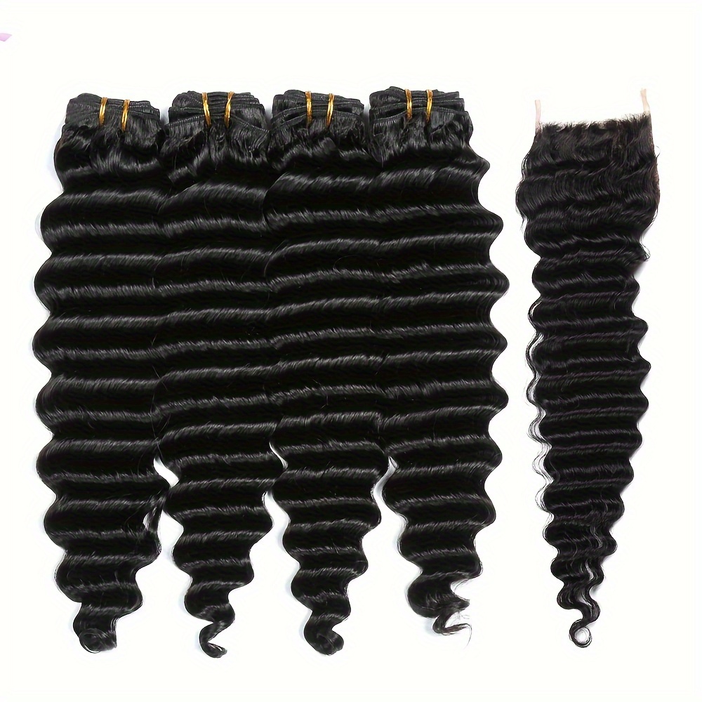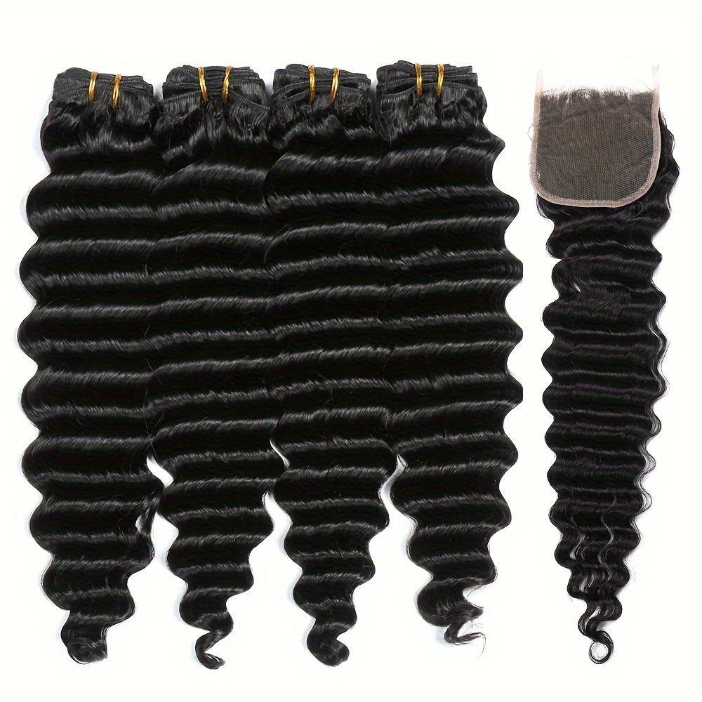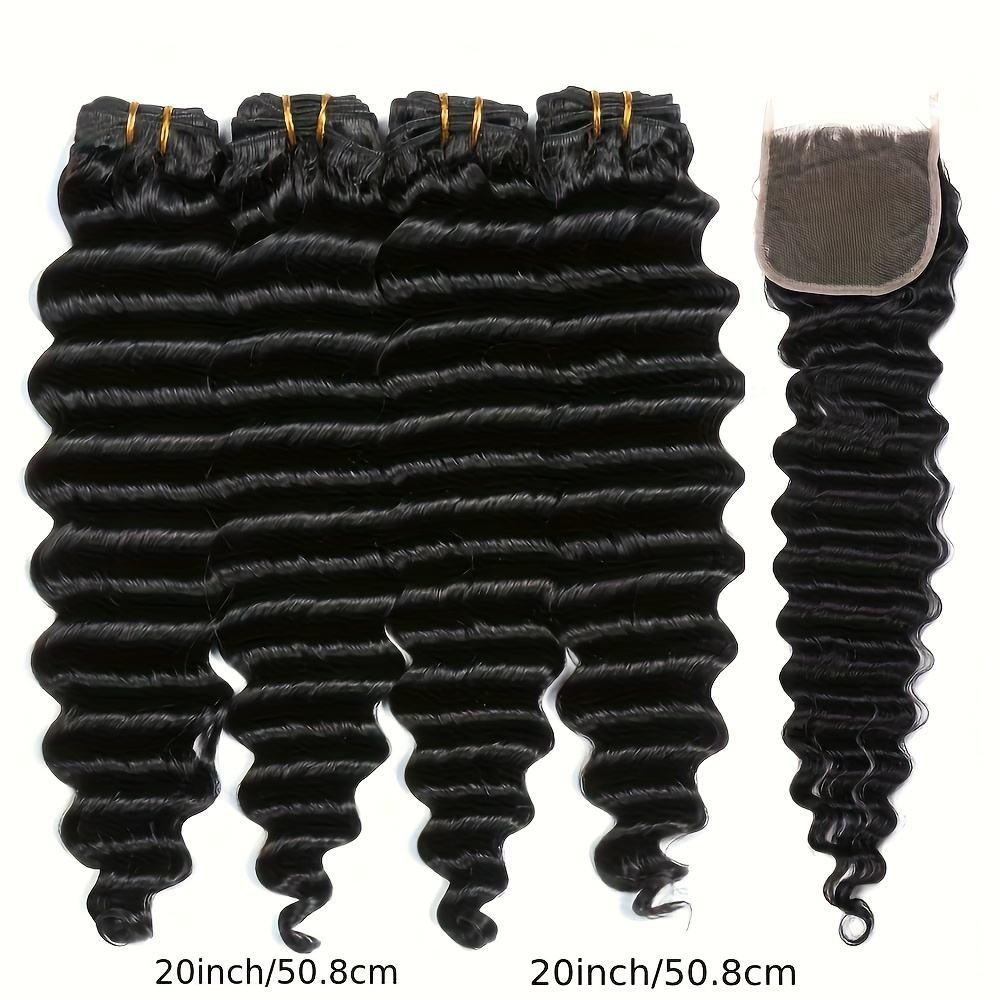 Peruvian Deep Wave Hair With 5×5 Lace Closure Unprocessed Human Hair Bundles With Lace Closure Free Part Transparent Lace Virgin Human Hair Wet And Wavy Weave Hair