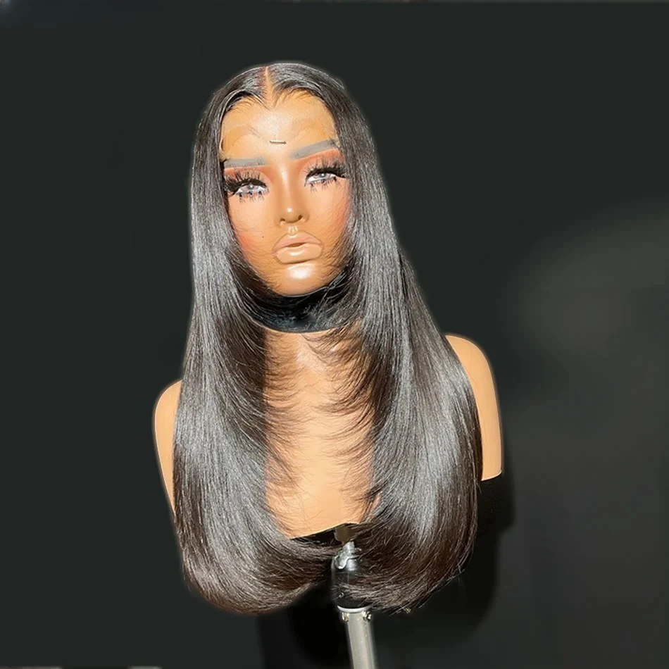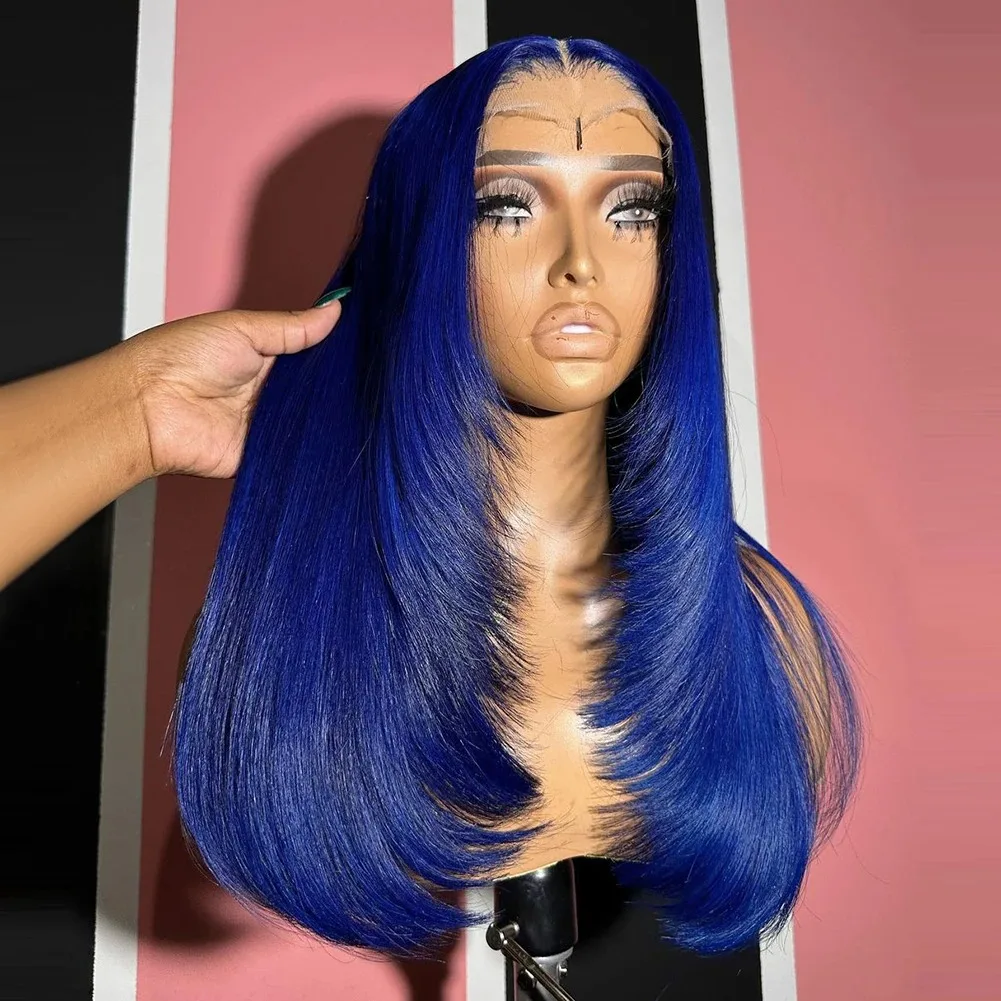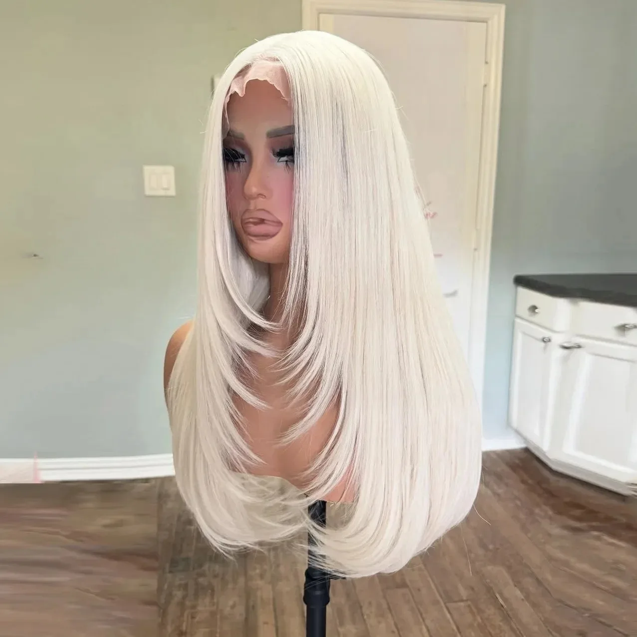Pink Wig Layered Cut Bone Straight Lace Front Wig PrePlucked 13×4 HD Lace Frontal Wig Synthetic High Quality Daily Wear Cosplay