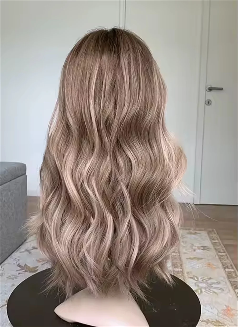 Premium 10% Human Hair Blend Luxury HD Lace Wig Dark Blonde Balayage Synthetic Invisible Lace Front Wig for Women with Hair Loss