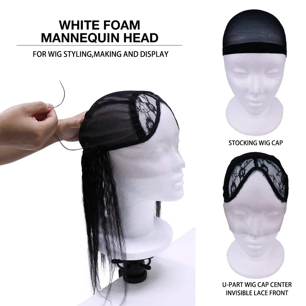 Wig Heads Stand Foam Head To Make Wig 1Pcs Display Styling Head With Mounting Holes White Faceless Styrofoam Head For Wigs